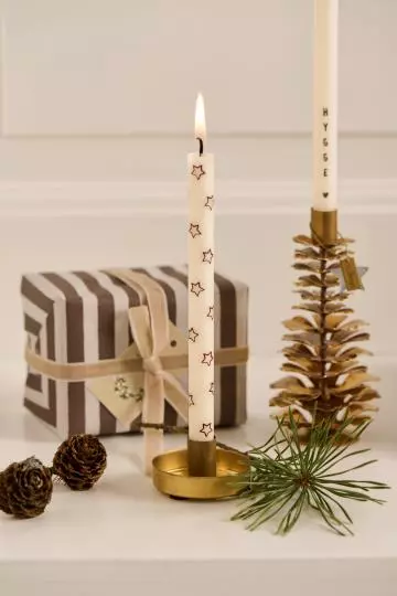 IB Laursen Kertelys m/brune stjerner stearinvoks Ø:1,3 H:20 Svanemerke