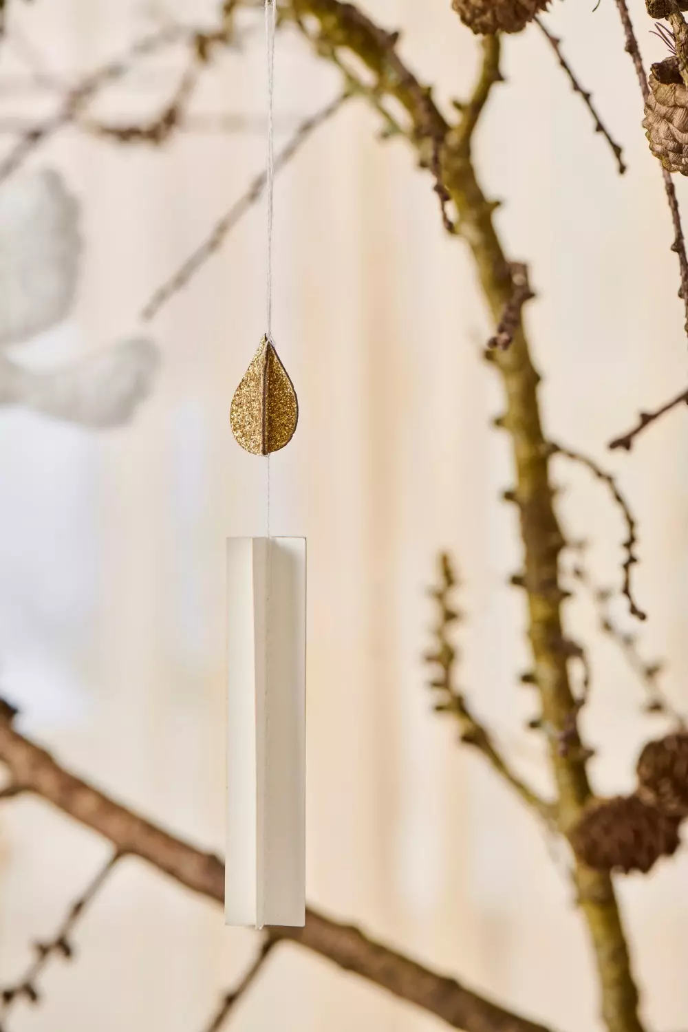 Dette lys til ophæng med glitterflamme og lavet af papir er ideel til at hænge på juletræet eller i vinduet og skaber hurtigt en hyggelig julestemning.