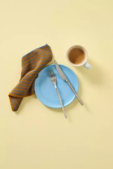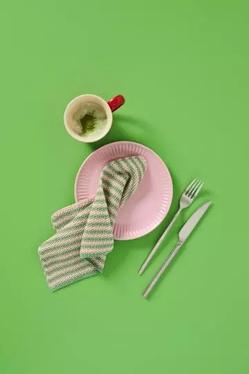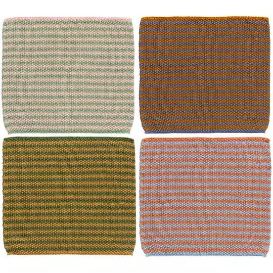 En slitesterk og godt absorberende oppvaskklut i myk bomullsstrikk – de fine stripene og varme fargene gir kjøkkenet et snev av stil og gjør det praktiske litt hyggeligere.