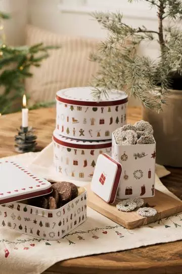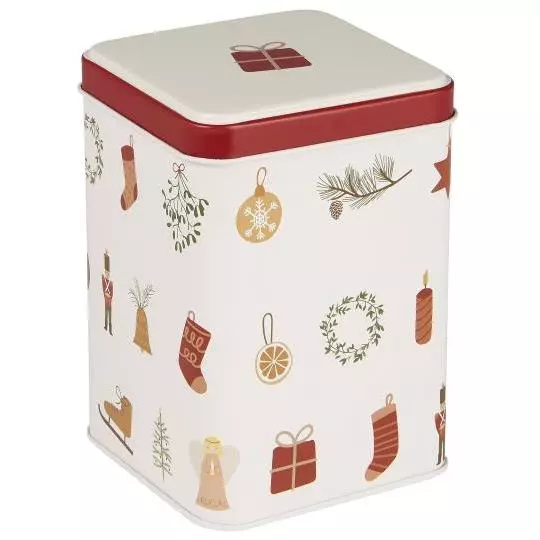 Firkantet blikkboks med juleikoner fra serien ‘Min nostalgiske jul’. Denne søte lille blikkboksen er perfekt som teboks eller til diverse julegodteri og småting. Laget av metall og er matsikkert.