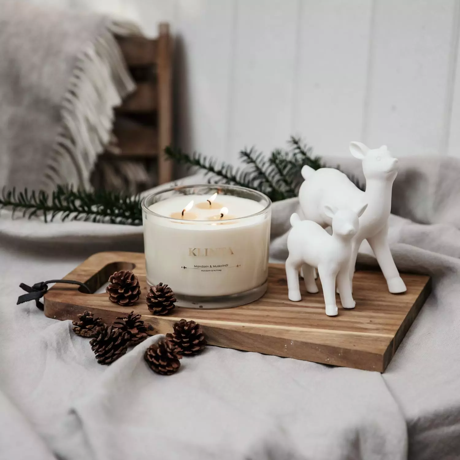 Duft beskrivelse: Varm og fyldig juleduft med toppnoter av appelsin og mandarin som hviler på en base av treaktig muskatnøtt og kanel. En virkelig deilig, varm og kraftig juleduft! Klintas duftpinner har de samme milde og rene duftegenskapene som massasjelysene og vi velger å gå samme vei som vi har gjort så langt, nemlig det naturlige og det miljøvennlige. I motsetning til mange andre duftpinner som for det meste består av alkohol eller glykol, har Klinta gravd litt dypere og funnet en vegetabilsk olje med like gode duftbærende egenskaper som alkohol, men uten den sterkt alkoholholdige dampen. Klintas Fragrance Sticks er basert på olje fra soyabønnen, en lettdyrket og hurtigvoksende bønne som er helt fornybar. Deretter tilsettes enten eterisk olje eller duftolje.